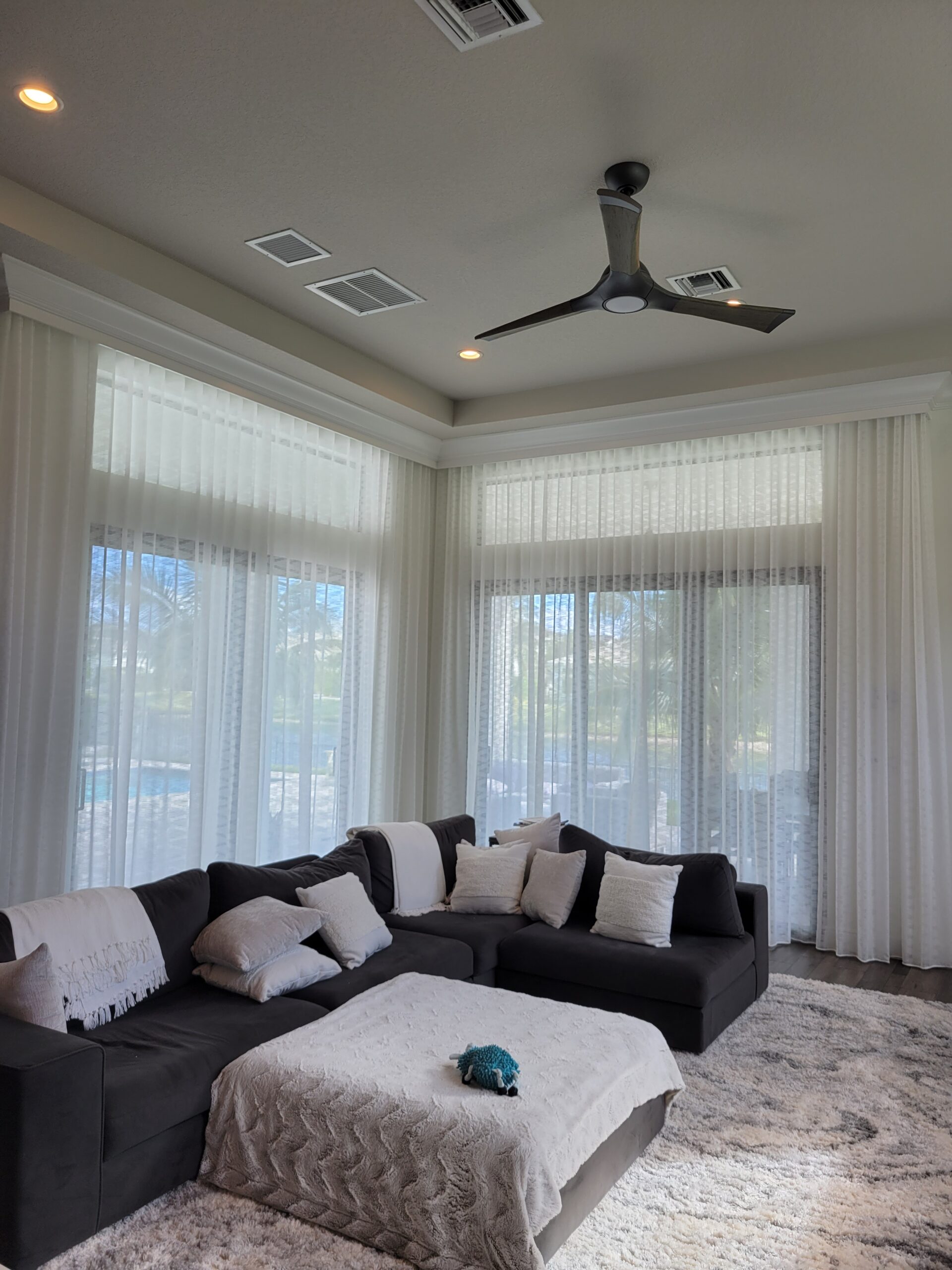 Drapes, sheers and panels add an excellent finishing touch to most window treatments. Whether they are strictly decorative or being used for functionality, they come in a wide range of colors, patterns as well as sheer to room darkening. We encourage clients to add these finishing touches to their windows as they add a touch of warmth and depth that really completes most projects.